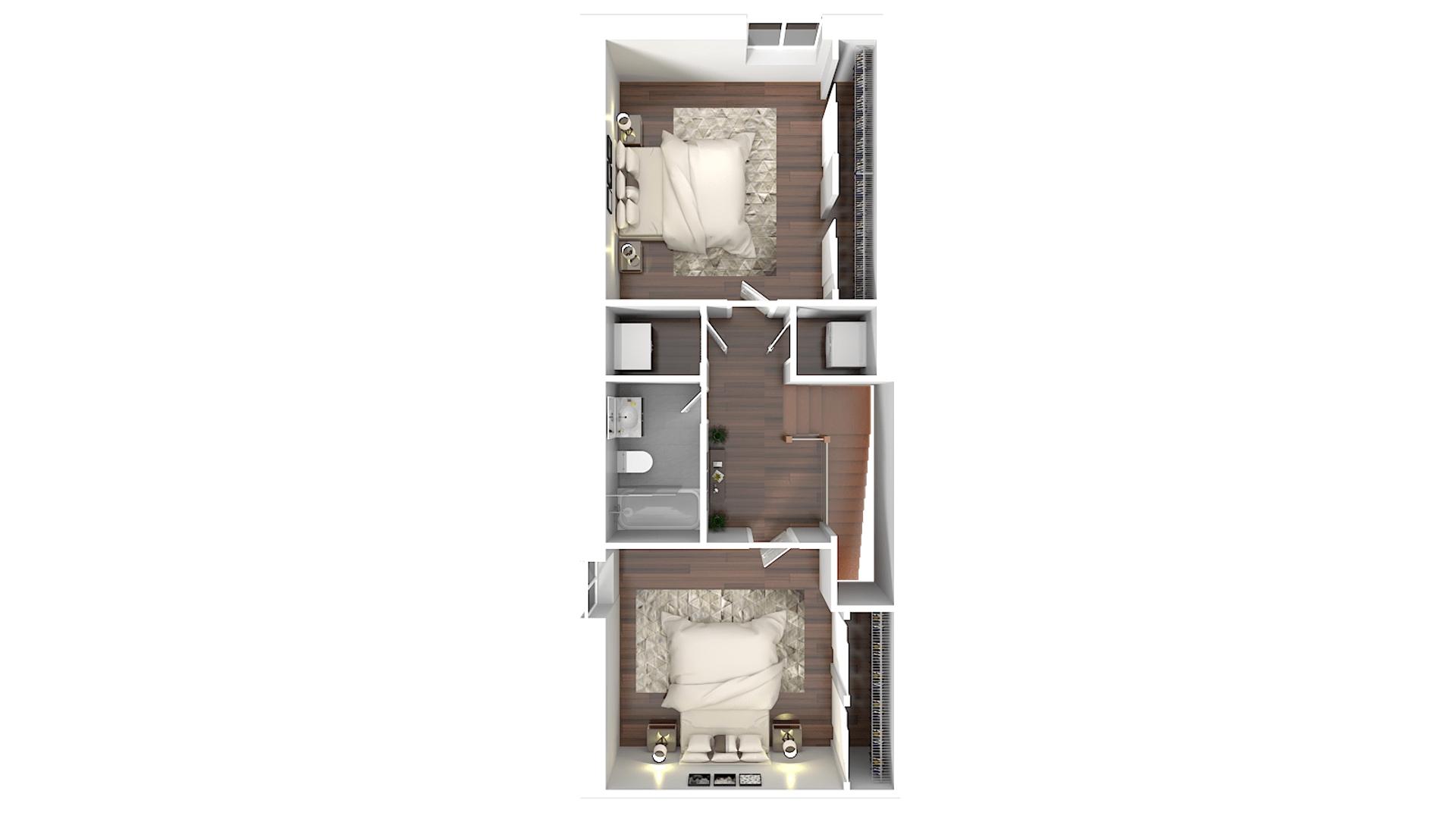 Spacious 2-floor apartment with 2 beds, 1.5 bath. Large kitchen space with breakfast counter, lots of natural light and private patio!